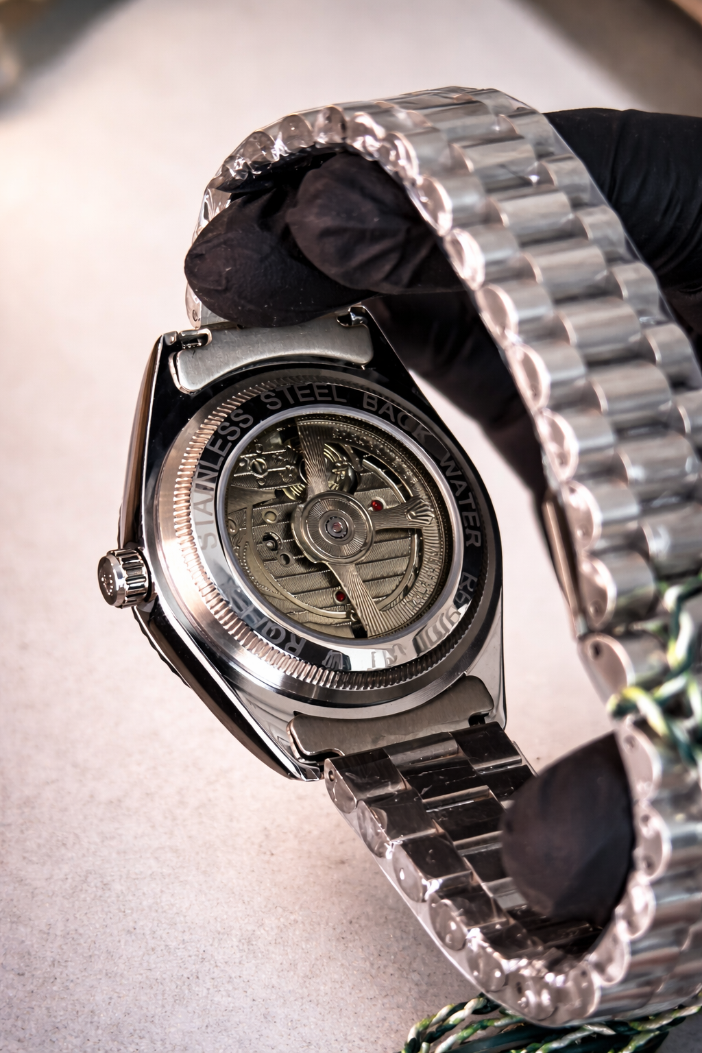 Este modelo automático AAA+ está diseñado para quienes buscan un reloj que transmita estatus, sin pagar precios extremos.